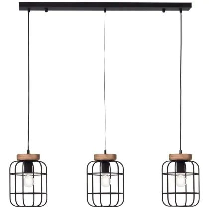 Beschreibung Brilliant Gwen Pendelleuchte Metall Holz Schwarz | Geeignet für 3x E27