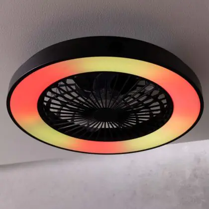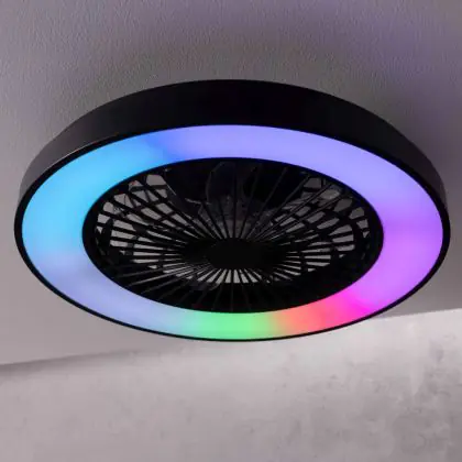 Der Brilliant Mazzaro Ventilator Plastik Schwarz 36W 4700lm - 830-865 CCT+RGB | 485mm - Fernsteuerung Dimmbar überzeugt durch sein modernes Design. Er kombiniert leisen Betrieb mit starker Luftzirkulation – ideal für alle, die ein kühles Raumklima.