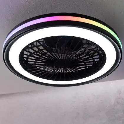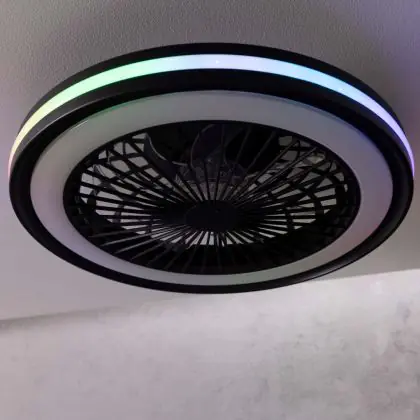 Der Brilliant Palmero Ventilator Plastik Metall Schwarz 36W 5000lm - 827-865 CCT | 466mm - Fernsteuerung Dimmbar überzeugt durch sein modernes Design. Er kombiniert leisen Betrieb mit starker Luftzirkulation – ideal für alle, die ein kühles Raumklima.