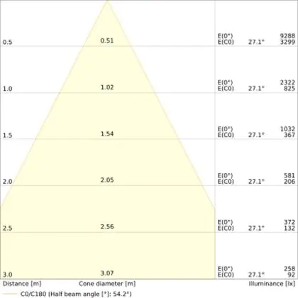 Der LED-Deckenspot kommt mit der Farbtemperatur 3000K - Warmweiß daher. Als Faustregel gilt: Je niedriger der Kelvinwert, desto gemütlicher wirkt das Licht.