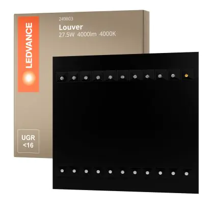 Das Ledvance LED Panel Louver 27.5W 4000lm - 840 Kaltweiß | 60x60cm - UGR ist ein modernes LED-Panel, welches Licht in der Farbtemperatur 4000K - Kaltweiß ausstrahlt und mit einer langen Lebensdauer punktet. Mit dem hochwertigen Panel, welches ideal als Allgemeinbeleuchtung verwendet werden kann, sparen Sie nicht nur Energiekosten, sondern steigen auch auf eine langlebige und flackerfreie Lichtlösung um.
