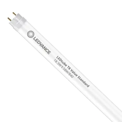 Die T8 LED-Röhren von Ledvance gibt es in verschiedenen Farbtemperaturen: Extra Warmweiß (2.700 K und weniger), Warmweiß (3.000 K), Kaltweiß (4.000 K) und Tageslichtweiß (6.500 K). Diese Röhre strahlt ihr Licht in 4000K - Kaltweiß aus.