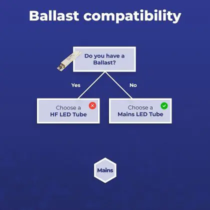 Falls eine “Tandemschaltung” (wie z.B. in einer Rasterleuchte mit 4x 18W / 60cm Röhren) umgerüstet werden soll, finden Sie hier die wichtigsten Informationen zur Auswahl der richtigen Röhre.