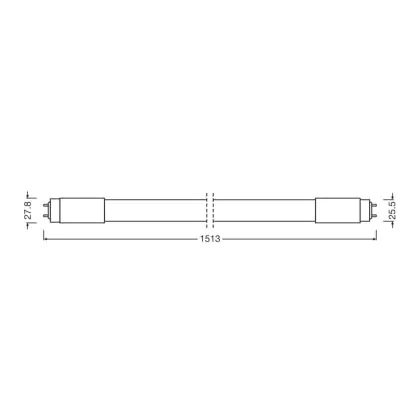 Die Osram LED Röhre T8 (UN) Standard Output 24W 2550lm - 830 Warmweiß | 150cm - Ersatz Für 58W ist eine effiziente LED-Röhre und der perfekte Ersatz für Ihre konventionelle Leuchtstoffröhre mit 58W und einem G13. Die Röhre hat eine Länge von 1513 mm und einen Durchmesser von 26.8 mm. Zudem strahlt das Produkt Licht in der Farbtemperatur 3000K - Warmweiß aus und punktet durch eine lange Lebensdauer.