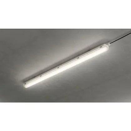 Die LED-Feuchtraumleuchte hat einen niedrigen Energieverbrauch von nur 42,9 Watt und ersetzt somit herkömmliche Leuchten mit zwei 58 W Fassungen. Aufgrund der höheren Effizienz sparen Sie rund 65 % Energiekosten ein.