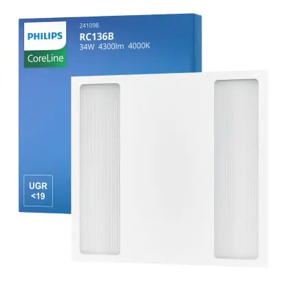 Bei dem Produkt “Philips LED Panel CoreLine RC136B 25/34W 3100-4300lm - 840 Kaltweiß | 60x60cm - UGR ” handelt es sich um eine effiziente Rasterleuchte der Marke Philips, welche Licht in der Farbtemperatur 4000K - Kaltweiß ausstrahlt und durch eine lange Lebensdauer punktet.