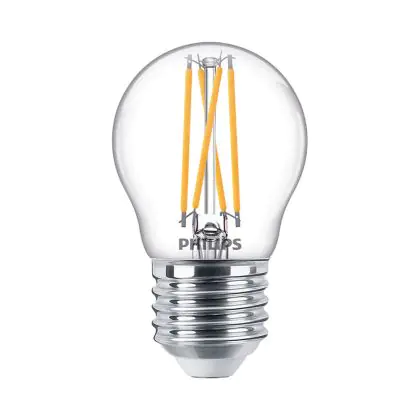 Die Philips Master Value LED Lustre E27 Kugel Fadenlampe Klar 2.5W 340lm - 927 Extra Warmweiß | Höchste Farbwiedergabe - Dimmbar - Ersatz für 25W ist eine effiziente E27 LED-Lampe mit Retrodesign und der perfekte Ersatz für Ihre konventionellen 25W Lampen mit E27. Zudem strahlt sie Licht in der Farbtemperatur 2200K - 2700K Dim To Warm aus und punktet durch eine lange Lebensdauer.