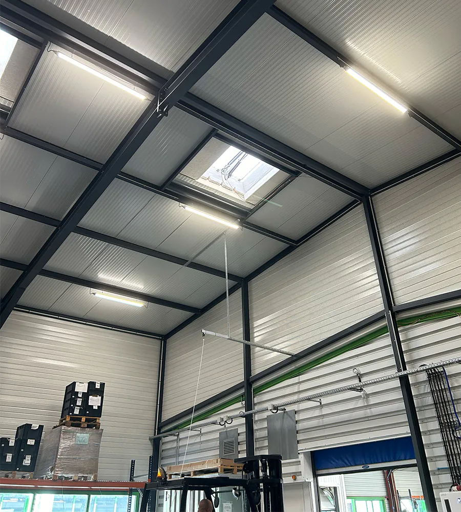 Unser Kunde stellt manuelle und elektrische Trittleitern sowie Aluminiumrampen für alle Arten von Fahrzeugen her. Die größte Herausforderung bestand darin, eine Beleuchtung zu liefern, die sowohl für die Arbeits- als auch Lagerbereiche ideal ist. Sie muss also leistungsstark als auch gleichmäßig sein.